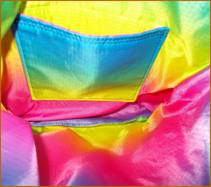 Inner is rainbow ripstop with pocket (ripstop