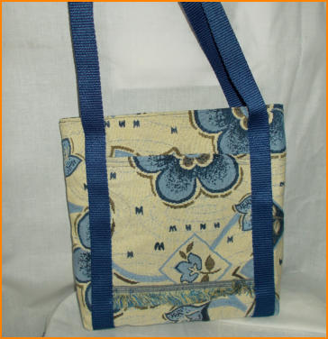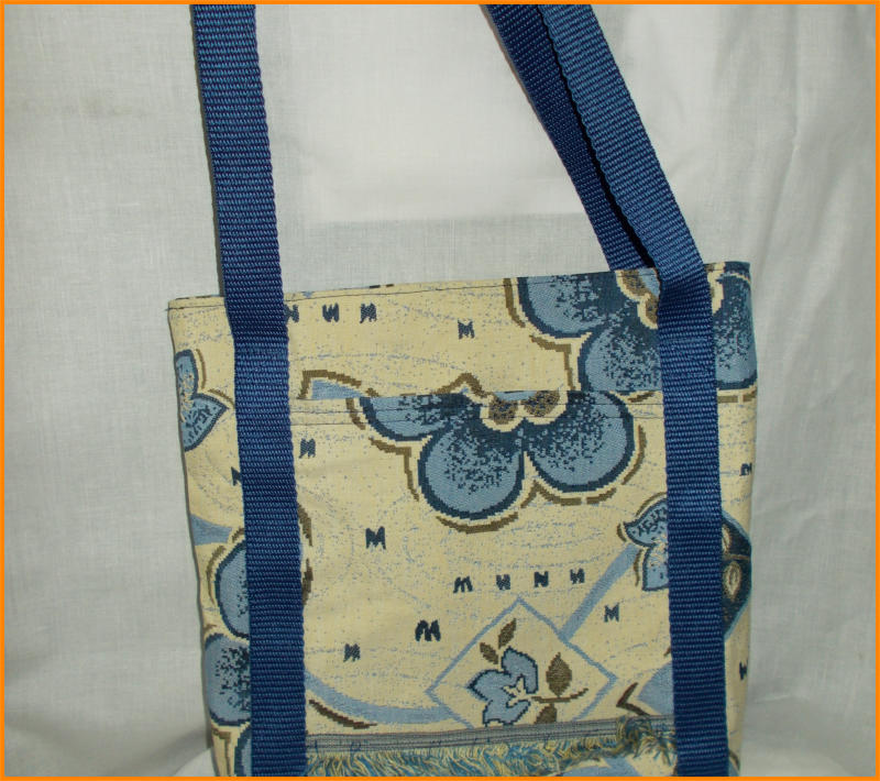 tapestry tote in blue- grab handles long